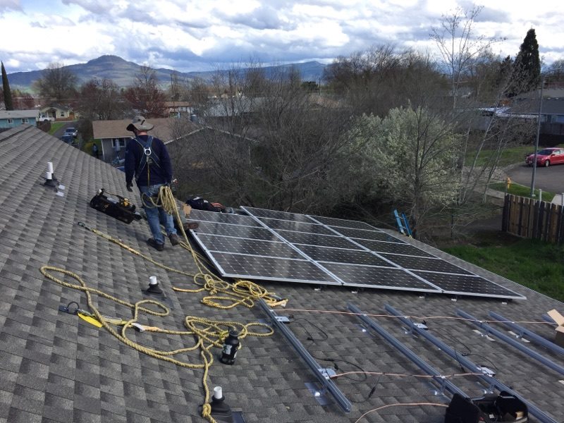 In 2015-17, Solar for All - with support from a Carpenter Foundation grant - completed seven solar projects on Rogue Valley Habitat for Humanity homes in Medford, Oregon. Since 2015 the 26kW of solar panels installed have produced over 35,000 kWh of power, saving the home owners ~$13,000 on their utility bills and preventing over 135 tons of carbon dioxide from entering the atmosphere. We'd like to especially thank Sunlight Solar for donating their travel expenses from Bend to support this effort to Save the Planet, One Family at a Time!